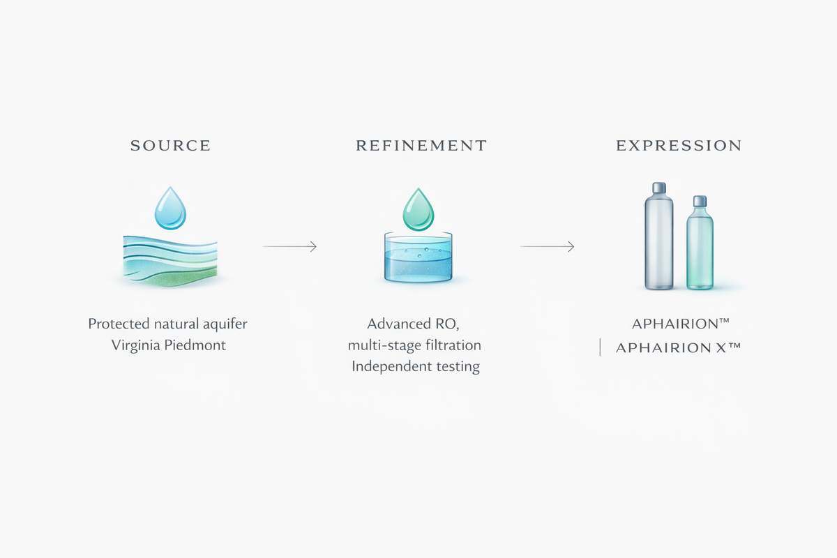 Our waters are sourced from a protected natural aquifer in Virginia’s Piedmont region and refined through advanced reverse osmosis and multi-stage filtration to deliver exceptional purity and consistency — without sacrificing balance or character.